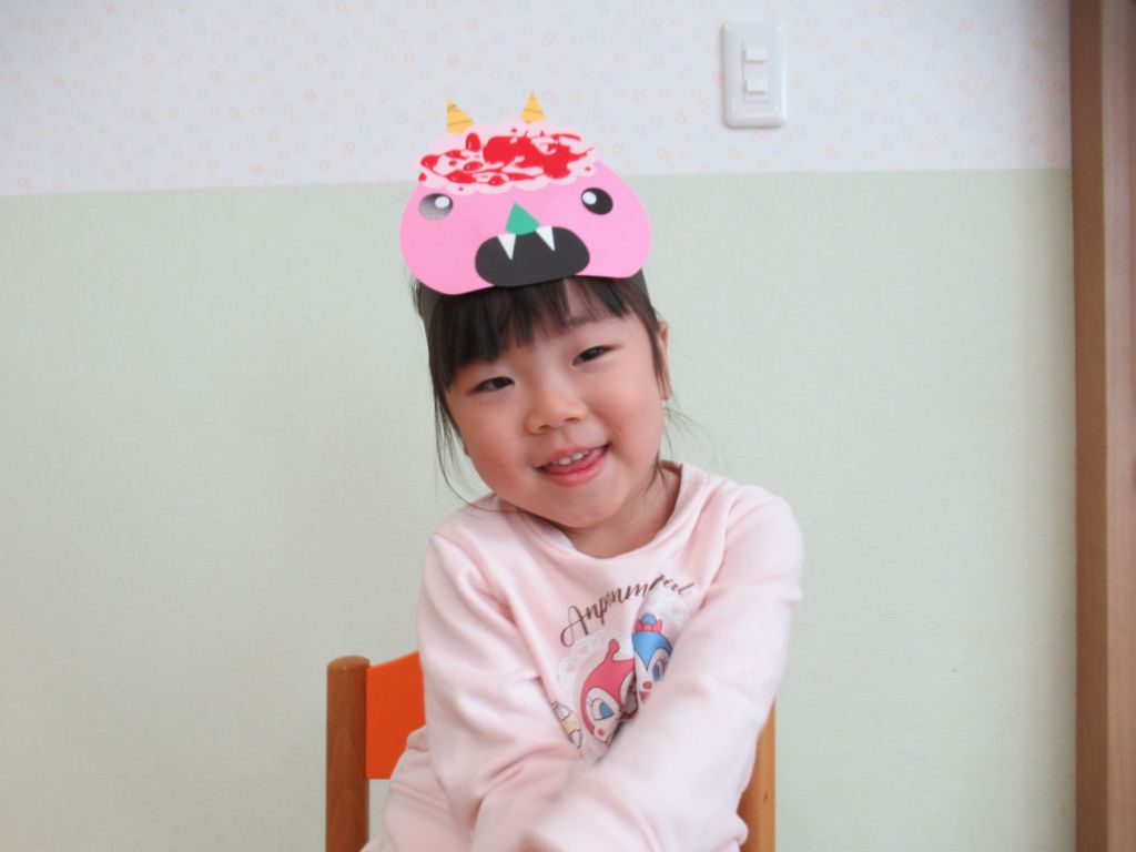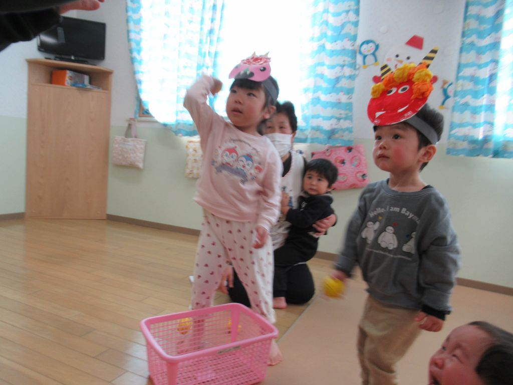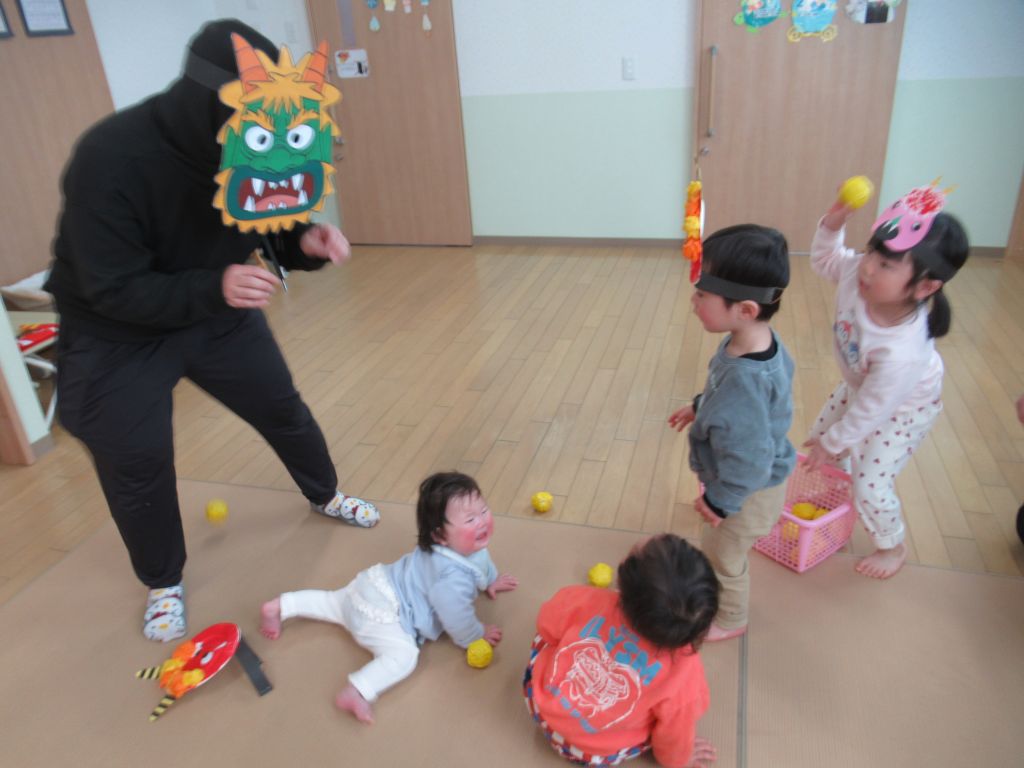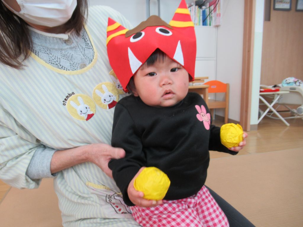 鬼を怖がりながらも、豆を投げて退治することができました☆彡