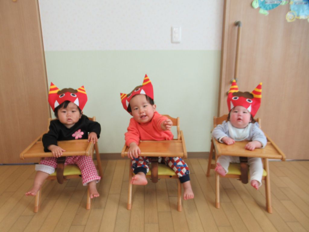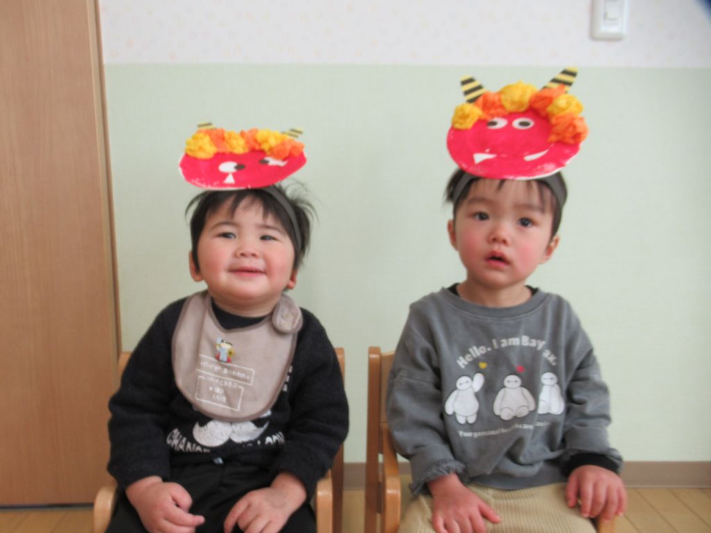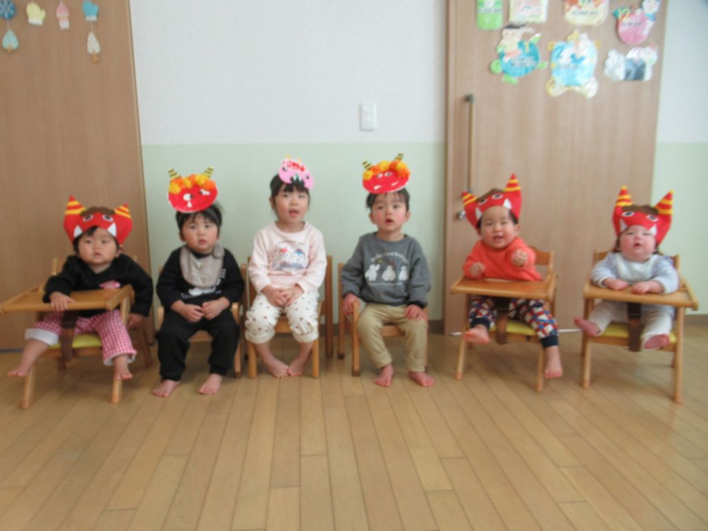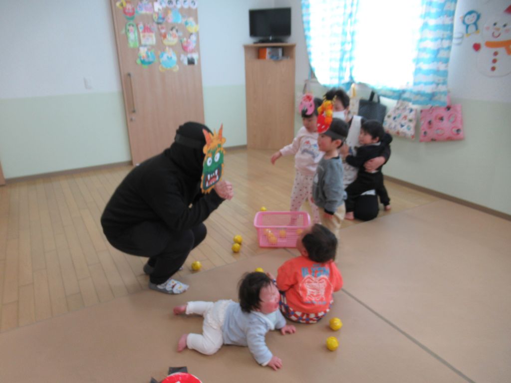 鬼を怖がりながらも、豆を投げて退治することができました☆彡